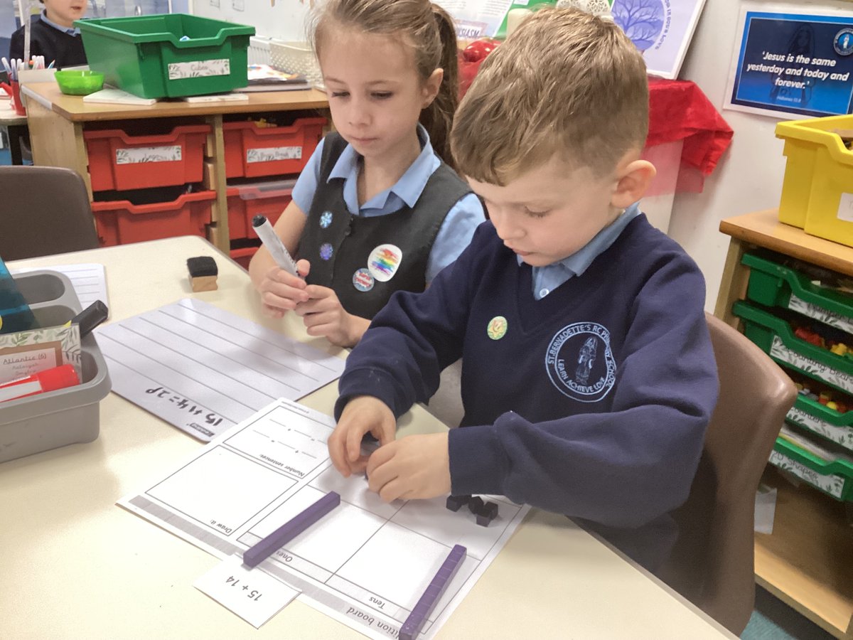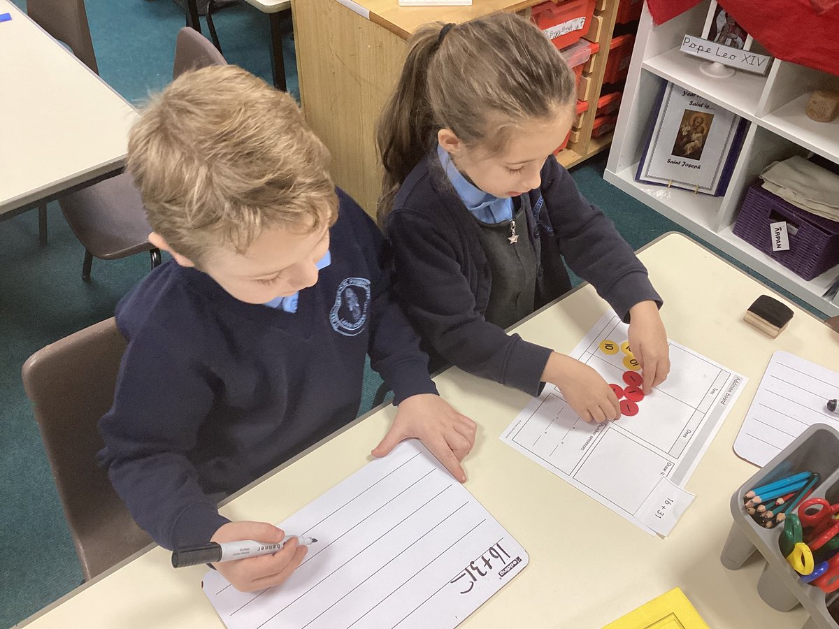 Some super maths happening in Year 1/2! Some of us have been adding 2 digit numbers together! #stbernadettesmaths 👏
